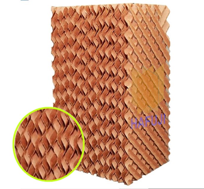 Tấm làm mát Cooling Pad 1500x600x150mm là “tấm” giấy được tạo ra từ các tấm giấy Kraft sau khi trải qua các công đoạn như tạo sóng, giấy được xếp chồng lên nhau, ép thành các "khối tường giấy" sau đó là nhúng keo gắn các lớp sóng tạo thành một khối giấy làm mát chắc bền và cuối cùng là khâu cắt thành phẩm tạo thành tấm làm mát cooling pad. Tất cả các bước sản xuất tấm làm mát ở Hafuji đều được giám sát chặt chẽ nghiêm ngặt nhằm mang lại chất lượng cao, bền lâu kéo dài tuổi thọ cho tấm cooling pad.