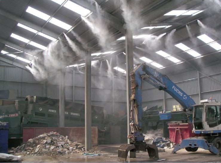 Phương pháp này sử dụng máy bơm áp lực cao để đẩy nước qua các đầu phun với tia phun để tạo ra nước dưới dạng sương mù. Khi đó sương bay hơi sẽ hấp thu nhiệt và làm mát không khí bên trong xưởng.