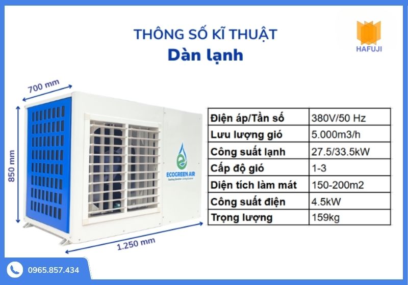 Hình 1: Thông số kỹ thuật giàn lạnh