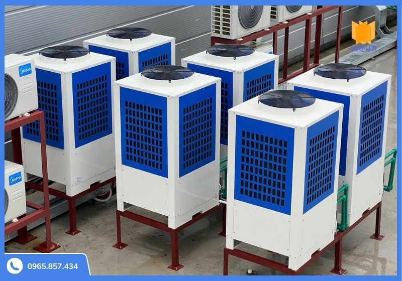 - Làm lạnh bằng khí gas giải nhiệt bằng nước.