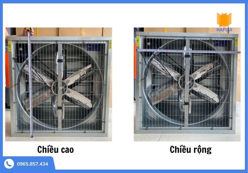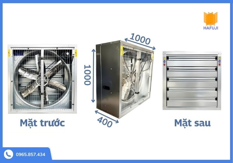Hình 2: Kích thước thực tế quạt hút công nghiệp vuông 1000x1000 Nako