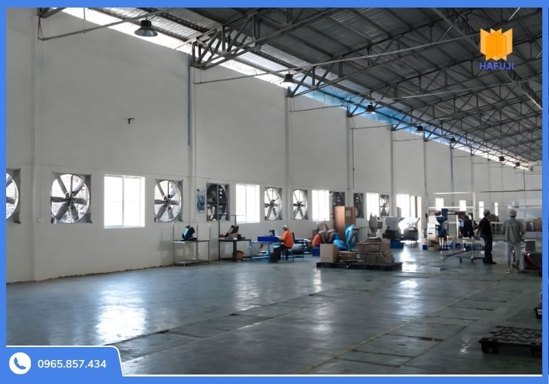 Quạt phù hợp cho nhà xưởng và kho bãi quy mô vừa, tùy thuộc vào chiều cao trần và yêu cầu thông gió cụ thể.