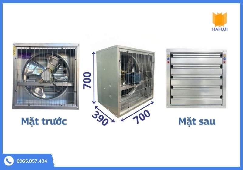 Hình 1: Kích thước thực tế quạt hút công nghiệp vuông 700x700