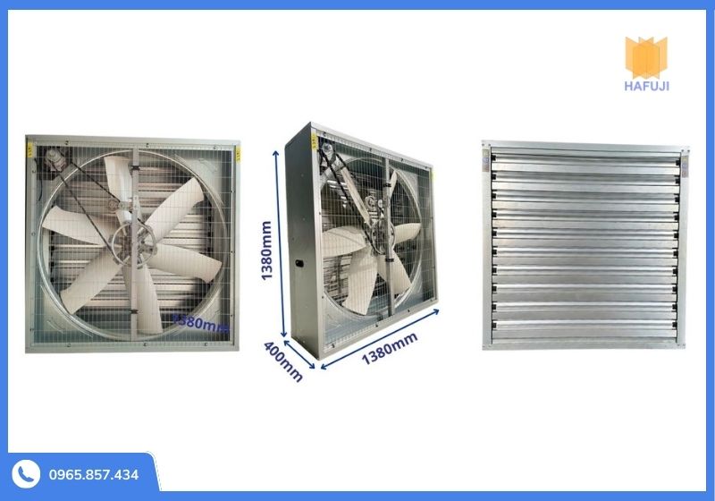 Những dòng quạt thông gió công nghiệp vuông kích thước nhỏ và trung bình như 900x900 hoặc 1100x1100 thường được sử dụng cho nhà xưởng vừa, kho hàng, khu vực sản xuất phân khu hoặc trang trại quy mô nhỏ. Trong khi đó, các kích thước lớn hơn như 1220x1220 và 1380x1380 phù hợp với nhà xưởng diện tích rộng, trần cao, khu sản xuất tập trung nhiều máy móc hoặc trang trại chăn nuôi quy mô lớn cần lưu lượng gió mạnh.