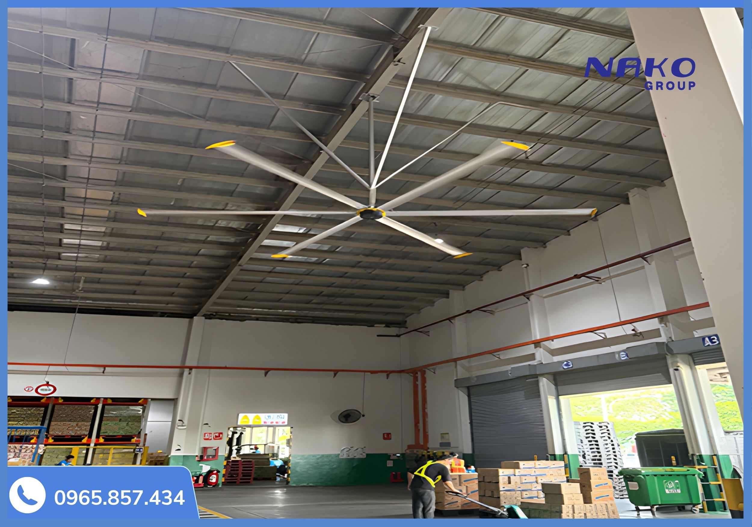 Hình 3: Quạt trần công nghiệp 3m Nako lắp tại kho hàng ở Vĩnh Phúc giúp nhiệt độ giảm đến 5 - 6 độ C