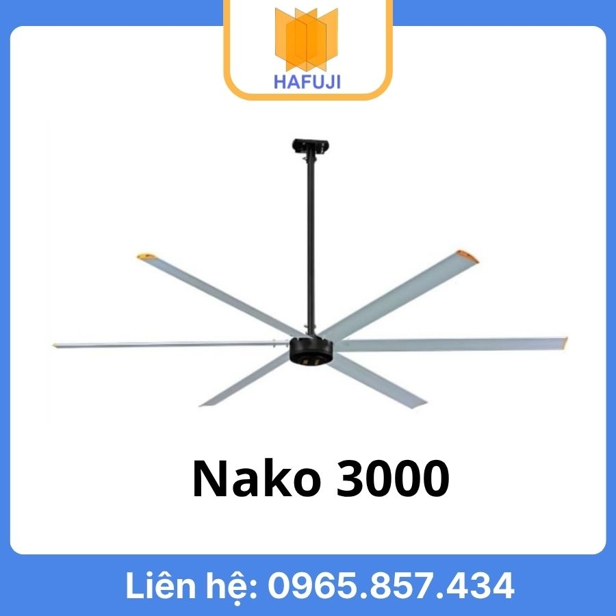 Model NAKO 3000 được công bố có công suất tiêu thụ khoảng 0.5 kW, phù hợp cho nhu cầu tiết kiệm điện nhưng vẫn tạo lưu lượng gió lớn. Đây là ưu điểm nổi bật với doanh nghiệp cần giảm chi phí vận hành hàng tháng.
