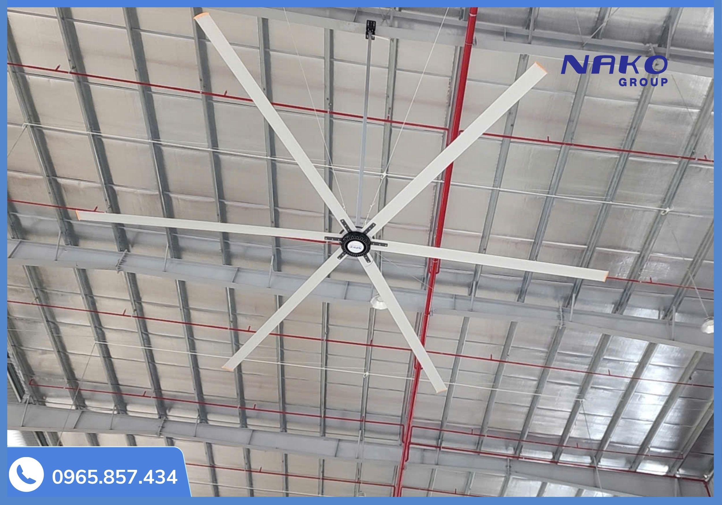 Trong nhiều hệ thống làm mát hiện đại, quạt trần HVLS thường được kết hợp với quạt hút công nghiệp Nako để tăng khả năng lưu thông không khí và giảm nhiệt độ trong nhà xưởng.