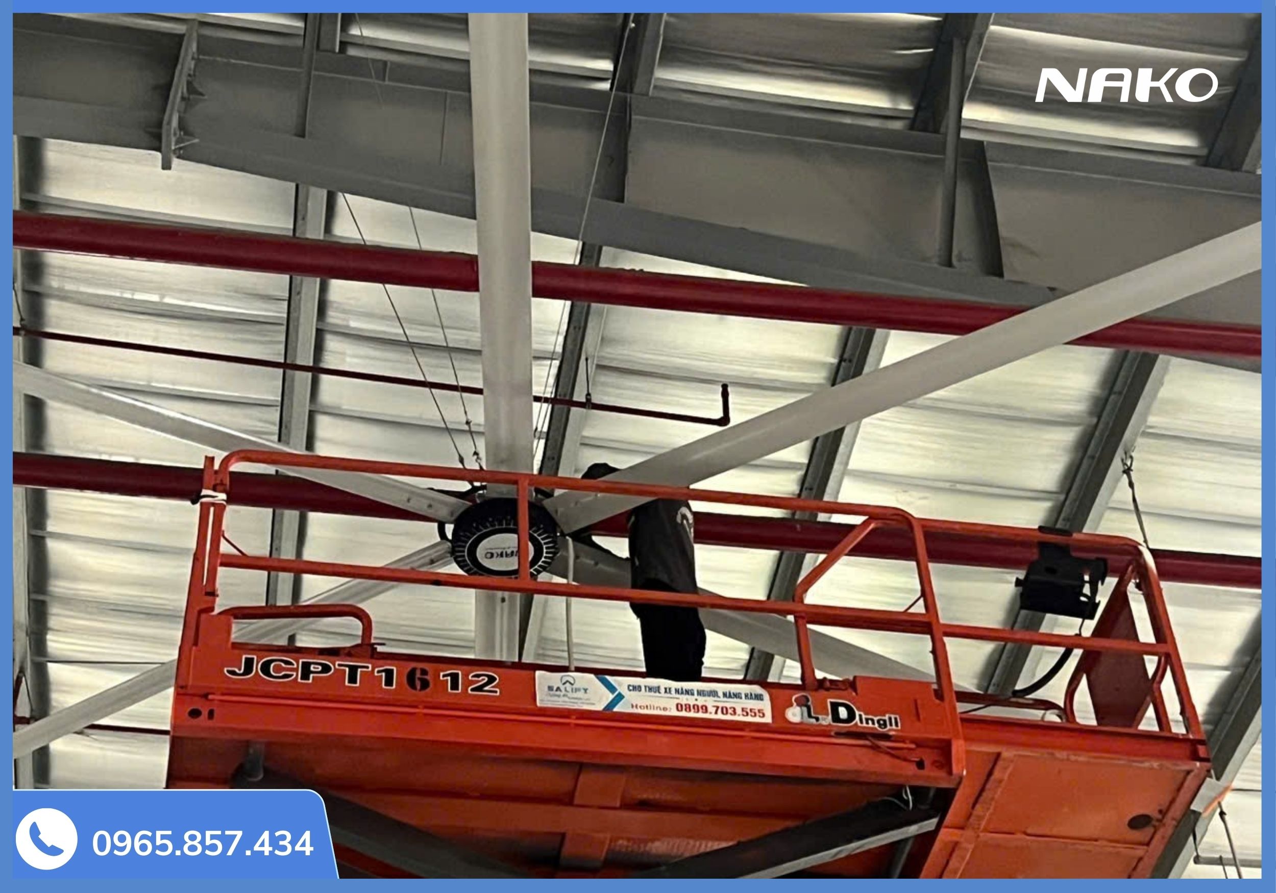 Ngoài chi phí mua quạt, doanh nghiệp cũng cần tính đến chi phí lắp đặt và vận hành. Việc lắp đặt quạt trần công nghiệp cỡ lớn 5m cần được thực hiện bởi đội ngũ kỹ thuật có kinh nghiệm để đảm bảo an toàn và hiệu quả vận hành lâu dài. Mặc dù chi phí đầu tư ban đầu có thể tương đối cao, nhưng quạt HVLS 5m lại có khả năng làm mát diện tích lớn và tiêu thụ điện năng thấp. Vì vậy, trong dài hạn, thiết bị này giúp doanh nghiệp tiết kiệm đáng kể chi phí điện năng so với nhiều giải pháp làm mát truyền thống.