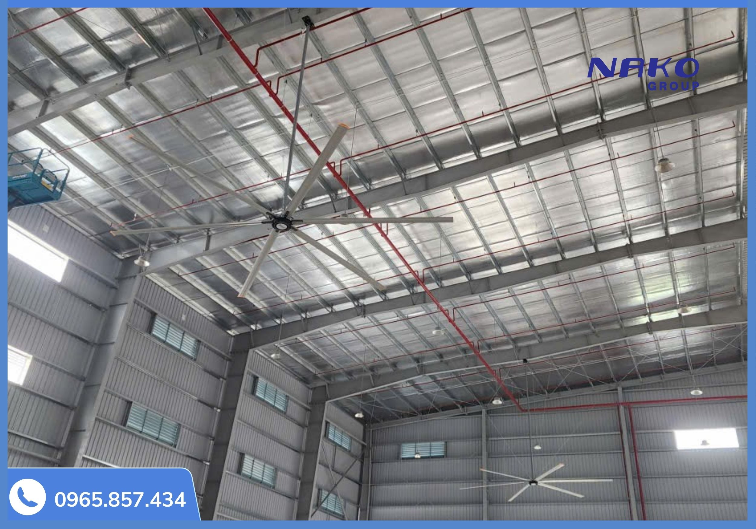 Hình 3: Ứng dụng quạt HVLS công nghiệp cỡ lớn Nako trong nhà xưởng
