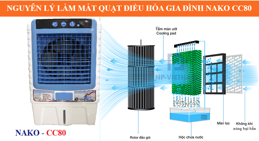 Mô hình cơ chế làm mát của quạt điều hòa NAKO CC80 model không có điều khiển