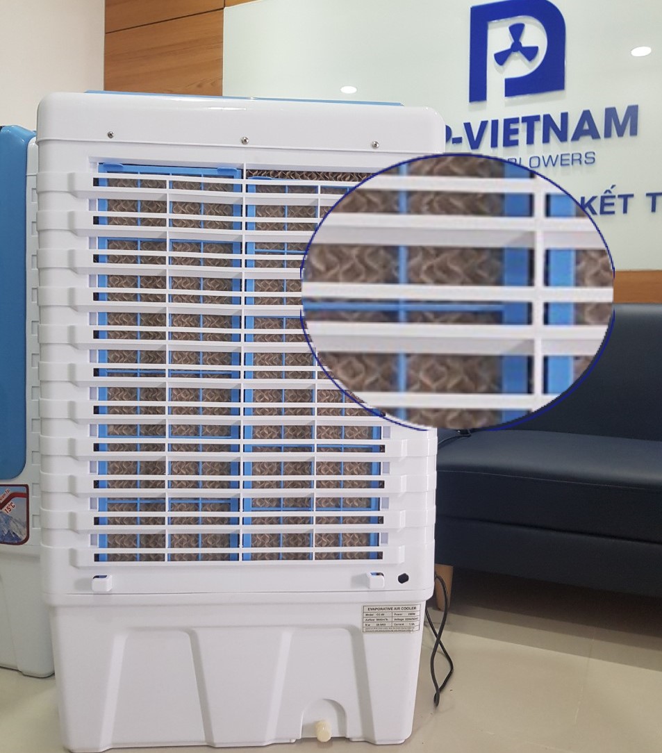 Đây là bộ phận chính hay còn được xem là “trái tim” của máy làm mát không khí, chính là bộ phận trao đổi nhiệt, có khả năng chuyển đổi không khí nóng thành luồng không khí mát lạnh khi thổi ra cửa gió, tạo ra làn gió mát hơn so với không khí xung quanh. Ngoài ra tấm làm mát còn có thể lọc sạch bụi bẩn và khử mùi.