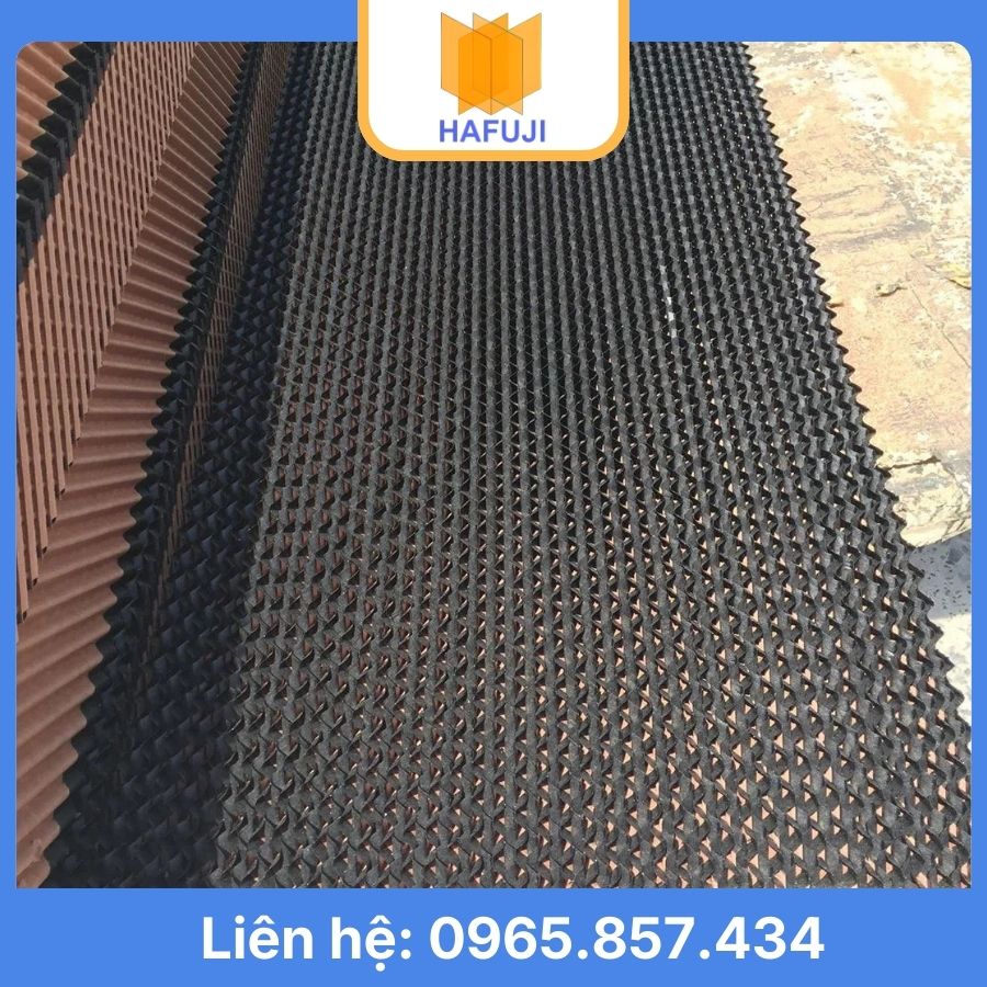 Tấm làm mát chống rêu, tấm cooling pad màu đen là tấm làm mát cooling pad được phủ 1 lớp màu đen để tạo độ cứng vững bề mặt, ngăn ngừa rêu mốc mọc trên bề mặt tấm trong quá trình sử dụng.
